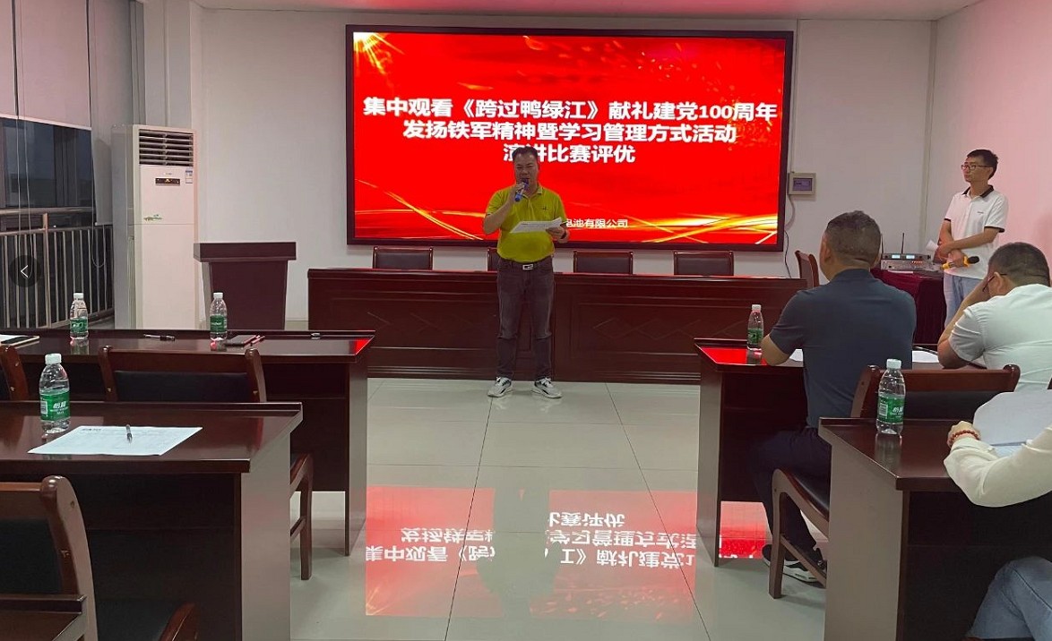 6月8日18時(shí)在四樓會(huì)議室,公司副總經(jīng)理邱玉勝為本次“集中觀看《跨過鴨綠江》獻(xiàn)禮建黨100周年、發(fā)揚(yáng)鐵軍精神暨學(xué)習(xí)管理方式”活動(dòng)致開幕詞。邱總強(qiáng)調(diào)身為黨員領(lǐng)導(dǎo)干部,要以身作則,認(rèn)真學(xué)習(xí)黨史,發(fā)揚(yáng)抗美援朝精神。希望益佳通人在工作中發(fā)揚(yáng)鐵軍精神,勇往直前。
