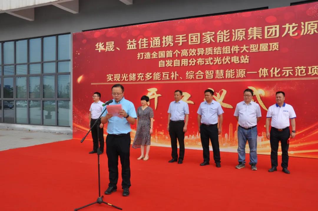 9月27日上午,由益佳通、華晟新能源攜手國家能源集團龍源電力打造的全國首個高效異質(zhì)結組件大型屋頂自發(fā)自用分布式光伏電站項目在益佳通廠內(nèi)隆重舉行開工儀式典禮?,F(xiàn)場參加開工儀式的領導有:宣城經(jīng)開區(qū)黨工委委員,管委會副主任羅正軍、經(jīng)開區(qū)黨工委委員,系統(tǒng)工會主席余紅、投資服務中心主任丁光華、開盛建設投資集團董事長張增華、國家能源集團龍源電力安徽公司副總經(jīng)理孫明、安徽益佳通電池有限公司副總經(jīng)理楊云求、華晟新能源科技有限公司總經(jīng)理徐曉華和各位來賓;開工儀式由華晟新能源總經(jīng)理徐曉華主持。