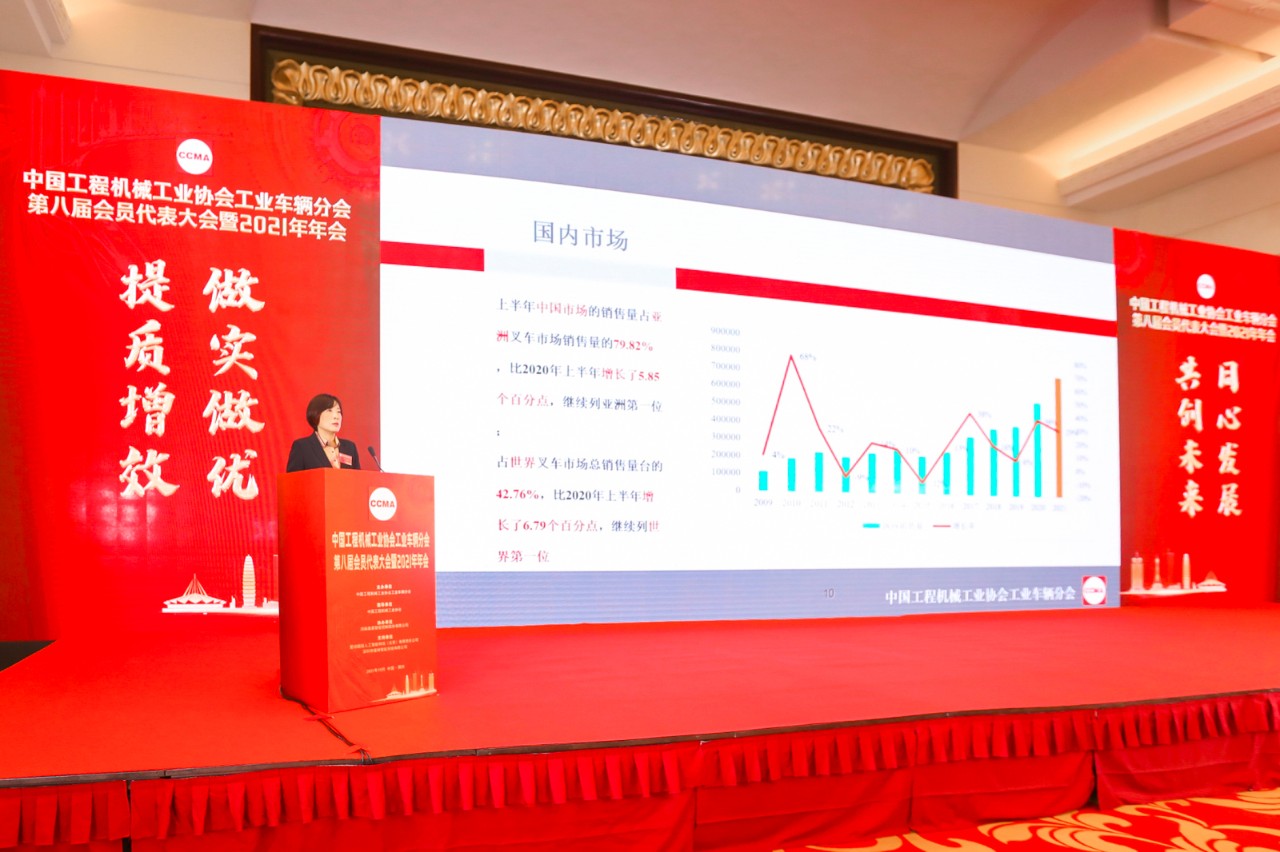 會(huì)上,中國工程機(jī)械工業(yè)協(xié)會(huì)工業(yè)車輛分會(huì)秘書長張潔就2021年度工業(yè)車輛行業(yè)市場概況進(jìn)行了分享。2021上半年全球工業(yè)車輛行業(yè)總銷量達(dá)到994056臺(tái),與2020年同期相比,增長了36.46%,中國市場得益于國家有效的防疫舉措,銷售達(dá)到425091臺(tái),同比增長62.24%,表現(xiàn)亮眼。